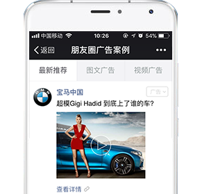 查看詳情>朋友圈廣告將會通過微信廣告系統進行投放和管理,廣告本身內容將基于微信公眾賬號生態體系, 以類似朋友的原創內容形式進行展現,在基于微信用戶畫像進行定向的同時,依托關系鏈進行互動傳播。